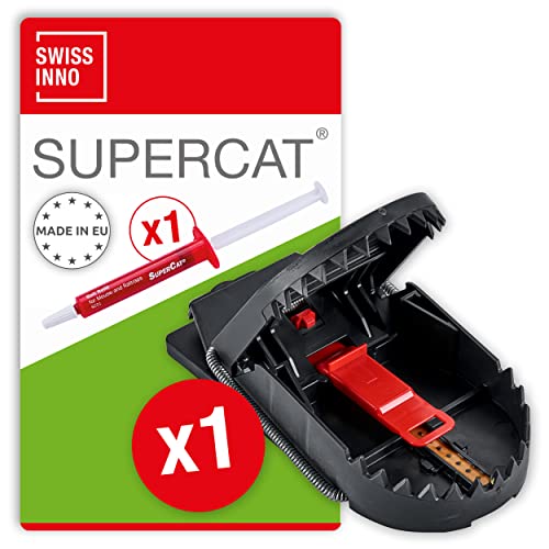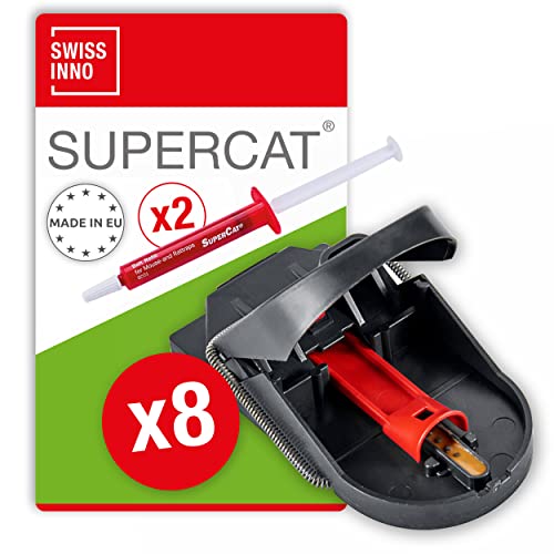SWISSINNO musfälla SuperCat: Effektiv + återanvändbar med giftfritt matbete. Fångar och dödar direkt. Inomhus- och utomhusbruk. Säker för barn och husdjur. Tillverkad i Europa: 8 st fällor