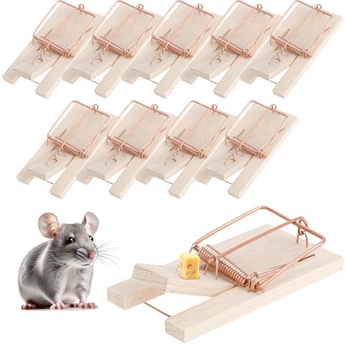 COM-FOUR® 10x musfälla i trä - snäppfälla för effektiv skadedjursbekämpning - återanvändbar snäppfälla med hög slagkraft (Musfälla 10 stycken)