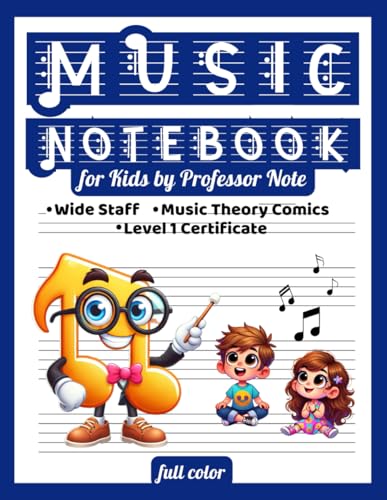 Music Notebook for Kids by Professor Note: Wide Staff Workbook | 13 Colorful Music Theory Lessons for Beginners | 80 Manuscript Sheets with 6 Staves Each | Perfect for Boys and Girls | Large 8.5x11 in