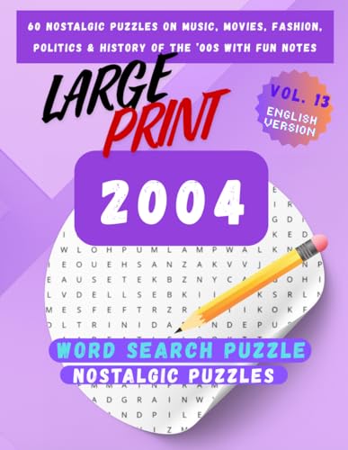2004 Word Search Puzzle Book for Adults (Large Print): VOL.13 - 60 Nostalgic Puzzles – Music, Movies, History – With Fun Notes