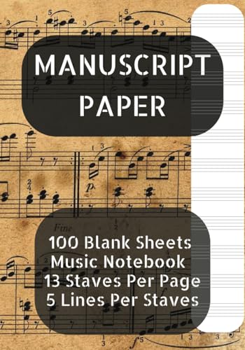 Manuscript Paper: Music Manuscript Paper Notebook, 13 Staves Per Page, 5 Lines Per Staves, 100 Sheets