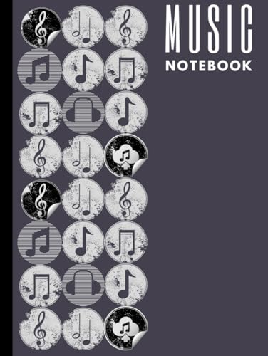 Music Notebook : black background with music icons: Wide Staff : Music Writing Hardcover Notebook * blank Sheet Music Notebook * Wide Staff Blank ... 13 Staves per page * 8.25" x 11" * 102 Pages