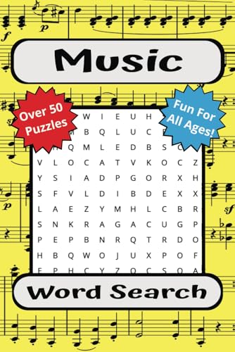 Music Word Search Puzzles: Word Searches with Easy to Read Print about Music, Music sheets, Music Lyrics and More | 6 x 9 inches, 110 pages | 50+ ... Gift for Vacations, Holidays and Relaxation.