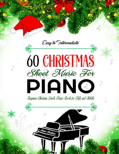 60 EASY TO INTERMEDIATE CHRISTMAS SHEET MUSIC FOR PIANO: Beginner Christmas Carols Music Book for Kids and Adults - Easy piano arrangements with Lyrics