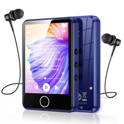 AGPTEK 64 GB MP3-spelare Bluetooth 5,3 med 2,8 tums full pekskärm, bärbar HiFi-musik med högtalare, FM-radio, e-book, linjeinspelning, stöd för upp till 128 GB, mörkblå