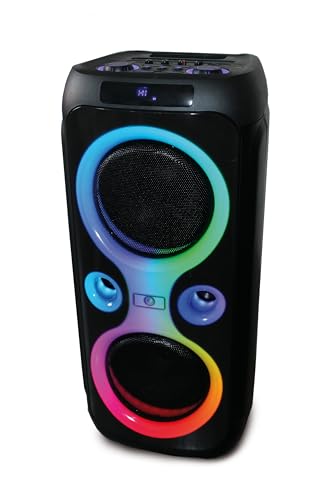 R-MUSIC Roller Box - High Power-högtalare - 7 timmars batteritid, ljus och musik i rytm - karaoke och gitarrfunktion - USB-port, AUX, Micro SD och radiofunktion - handtag och hjul