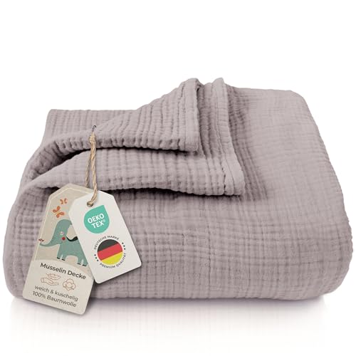 LAYNENBURG Premium muslin-filt 120 x 120 cm - 4-lagers bomull - Oeko-TEX 100 - gosig eller sovfilt, skötfilt för spädbarn, nyfödda och barn (brungrått)