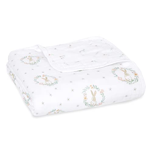 aden + anais essentials Dream Baby filt - 1-pack | stor andningsbar 100% bomull muslin sängkläder | barnsängsfiltar för nyfödda pojkar och flickor | babyshower eller gåvor | rodnande kanintryck