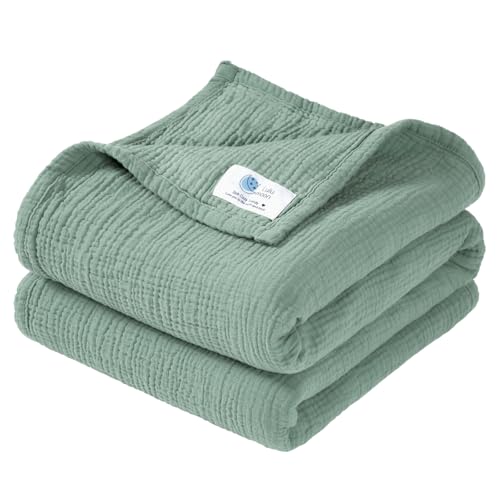 Carriediosa 100% bomull muslin filt 4-lagers förtvättat linne gasväv filtar för vuxna mjuk andningsbar lätt komfort överkast för säng och soffa, 127 cm x 178 cm dubbel storlek salvia grön