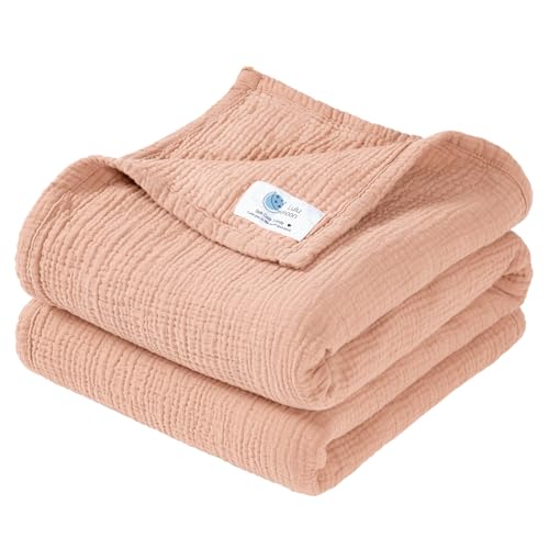 Lulu moon muslinfilt baby – ventilerande babyfilt, babyfiltar för nyfödda, mjuk krypfilt för barn, muslin-sovfiltar för småbarn flickor pojke 120 x 120 cm (rosa)