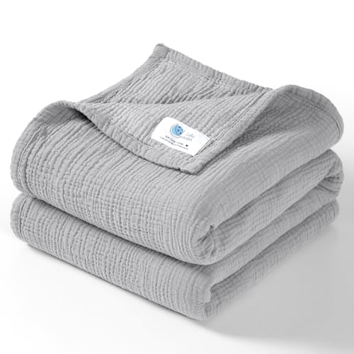 Lulu moon muslinfilt baby – ventilerande babyfilt, babyfiltar för nyfödda, mjuk krypfilt för barn, muslin-sovfiltar för småbarn flickor pojke 120 x 120 cm (silvergrå)
