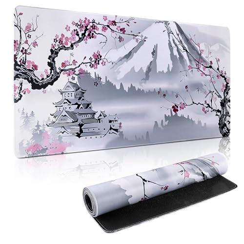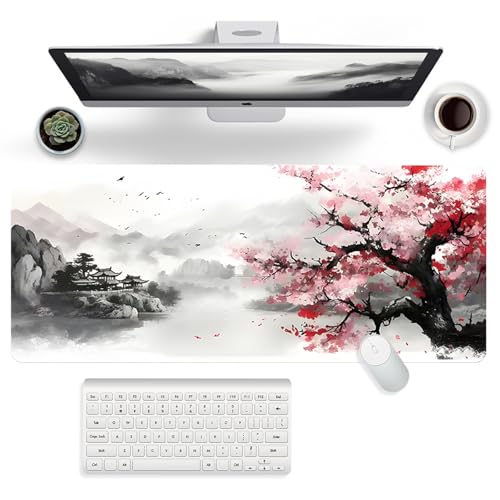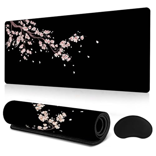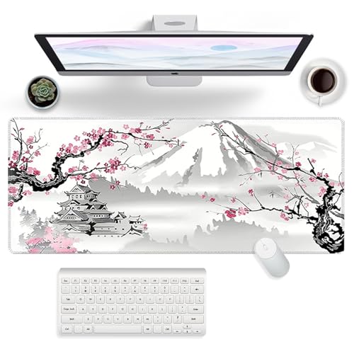 Giecy Gaming musmatta XXL, musmatta 900 x 400 mm, stort skrivbordsunderlägg med halkfri gummibas, skrivbordsmatta för tangentbord, PC, bärbar dator (körsbärsblomma HD-version)