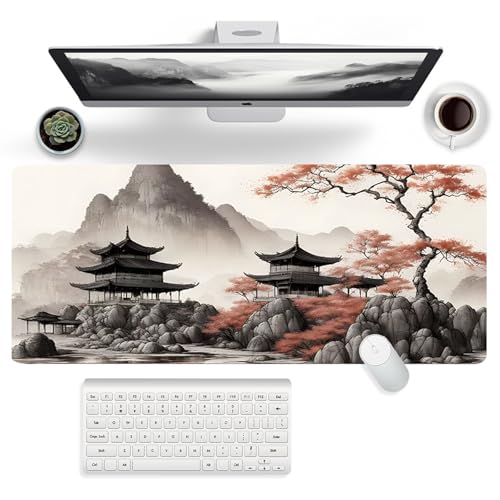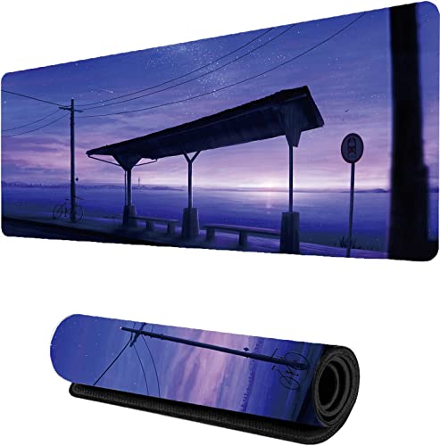 Wehilion XXL gaming stor musmatta 900 x 400 x 3 mm, skrivbordsunderlägg med sydda kanter, musmatta med HD-anime-landskapskort för spel, kontor och hem
