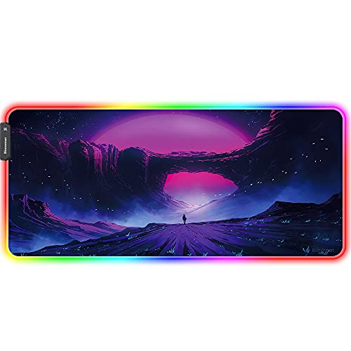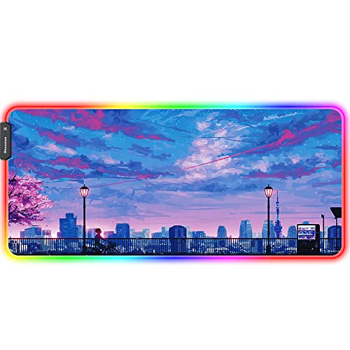 Bimormat Anime XXL-RGB-Musmatta, LED 900 x 400 x 3 mm - 10 Ljuslägen med Halkfri Gummiundersida, Skrivbordsunderlägg för Gaming, MacBook, PC, Bärbar Dator (90 x 40