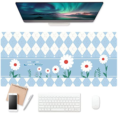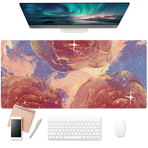 Wehilio XXL stor musmatta, gaming, 900 x 400 x 4 mm, musmatta med färskt blommönster, skrivbordsunderlägg, bordsunderlägg med sydda kanter för spelare, kontor och hem