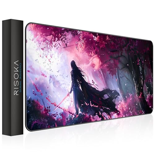 RISOKA® Gaming musmatta XXL 900x400 - Vattenavvisande yta & sydda kanter - Skrivbordsunderlägg med anime design för kontor, spel & setup - Passar mus, tangentbord & dator