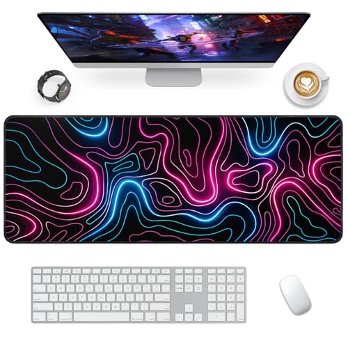 Giecy Gaming musmatta XXL, musmatta 900 x 400 mm, stort skrivbordsunderlägg med halkfri gummibas, skrivbordsmatta för tangentbord, PC, bärbar dator (neonlinje)