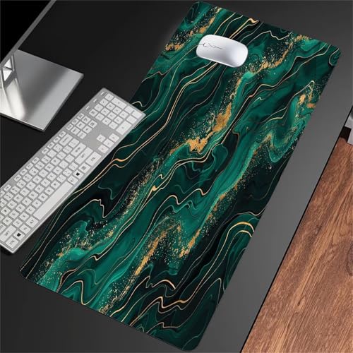 Gaming musmatta XXL, stor musmatta, 900 x 300 x 3 mm, förbättrar precision och hastighet, musmattor med sydda kanter, förlängt stort bordsunderlägg – grön marmor
