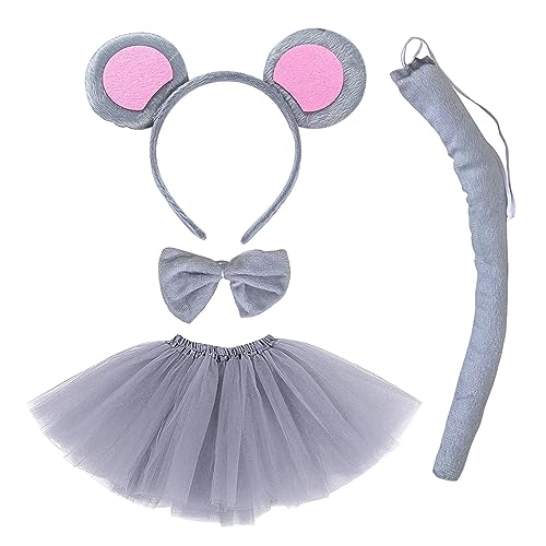 TSHAOUN pannband med musöron, djurkostym, set, öron pannband svans djur utklädnadsset, för barn cosplay födelsedagsfest karneval jul festtillbehör. Grå