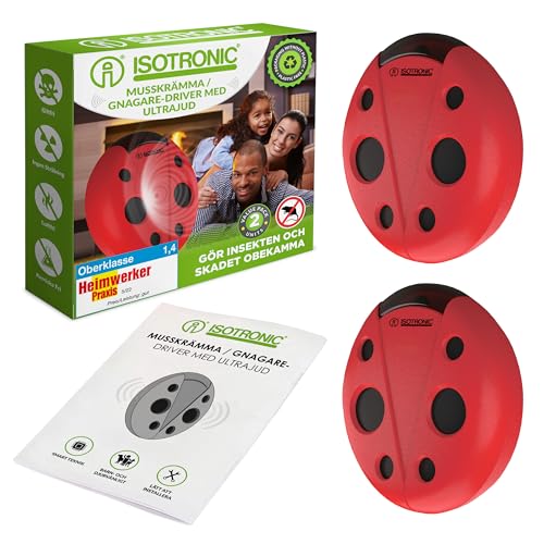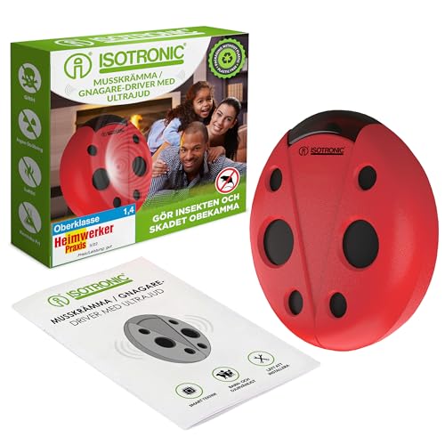 ISOTRONIC Musskrämma med ultraljud mot möss och råttor | batteridriven musskrämma för trädgård, hus, källare, vindar, garage och mycket mer. | djurskonsam och säker – 30 m² räckvidd