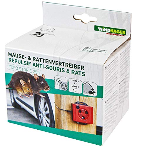Windhager skrämma av rått- och musskrämma Topo Stop R100 för mellantak håligheter vindar och förråd, driva bort mus, gnagarbekämpning, svart