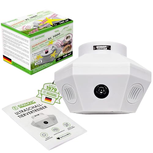 ISOTRONIC® Mårdskräck med kontakt – för 100 kvm | tradition sedan 1979 | musskrämma för vind, hus, lager, garage, carport | anslutning till ett eluttag | med ultraljud och LED-ljus (1)