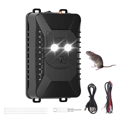 munloo Ultraljud mårdskräck batteridriven för bil 12 V, med blixtljus, mårdskydd bil, ultraljud mot råttor, kattskrämma, musskrämma för trädgård, carport, bil garage, hus