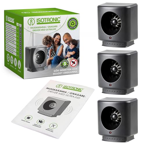 ISOTRONIC musskrämma/råttskrämma med ultraljud, skadedjursbekämpare elektronisk för hus, källare, trädgårdar, skräm bort möss och råttor utan kemikalier och musfällor