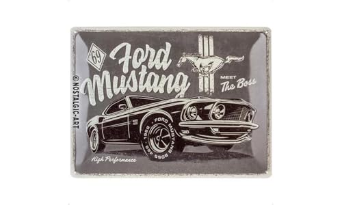 Nostalgic-Art Plåtskylt i retrostil, Ford Mustang – The Boss – Presentidé för biltillbehörsälskare, av metall, Deko vintagedesign, 30 x 40 cm