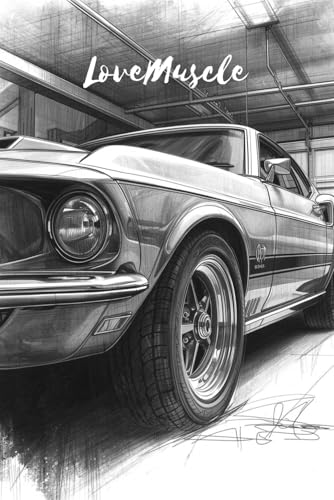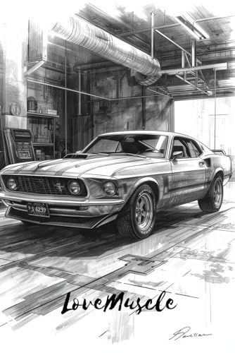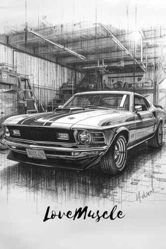 Notebook : Love Muscle Mustang boss at garage black&white sketch: Matte cover paperback notebook 96 inch paperback, whitepaper 120 page