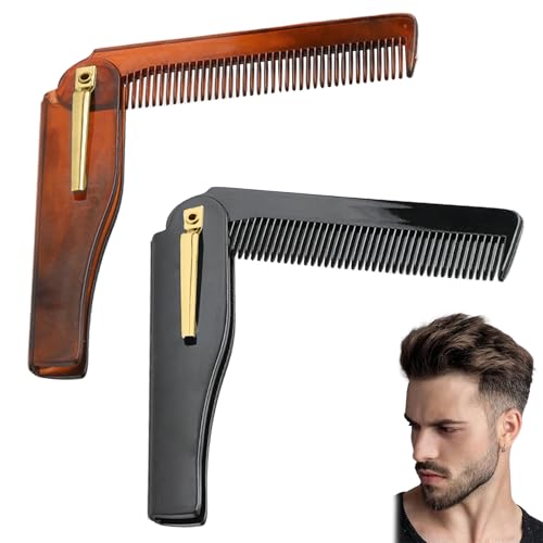 2 st kam för män vikbar hårborste, skäggkam premium för män minihårborste med metallplåtdekoration antistatisk liten ficka mustasch hår och skäggkam bärbar (A)