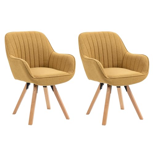 MEUBLE COSY Set med 2 skandinavisk matsalsstol sminkbord stol svängbar sits med armstöd för sovrum vardagsrum kök kontor, vadderad tyg ben i massivt trä, gul, 60 x 58 x 83 cm
