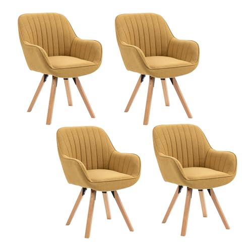 MEUBLE COSY Set med 4 skandinavisk matsalsstol sminkbord stol svängbar sits med armstöd för sovrum vardagsrum kök kontor, vadderad tyg ben i massivt trä, gul, 60 x 58 x 83 cm