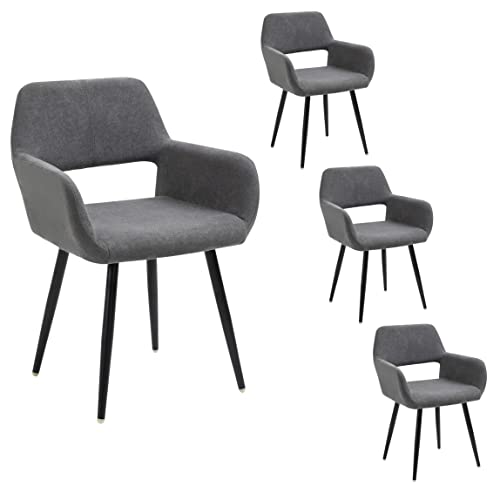 Cosy möbel set med 4 matsalsstol vadderad stol i tyg metallben för kök vardagsrum kontorsrum, grå, 56 x 56 x 78 cm