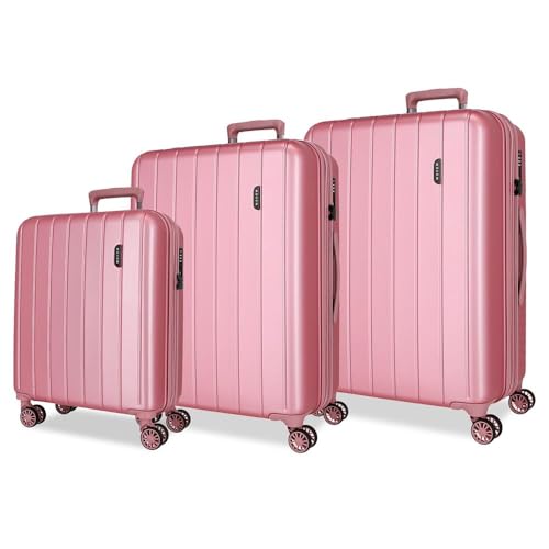 Movom Trä Resväska Set Rosa 55/68/78 cm Hård 11,4 kg Stängning TSA ABS 11,4 kg 190 L Utdragbart Handbagage, Rosa, Talla única, Bagageset