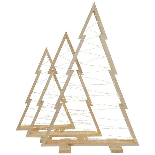 WEECO Julgranar av trä i set om 3 med LED-belysning – XLL 113, 90, 78 cm. Naturligt trä, måla träden i varje färg. Modern juldekoration för företag, hotell, skyltfönster