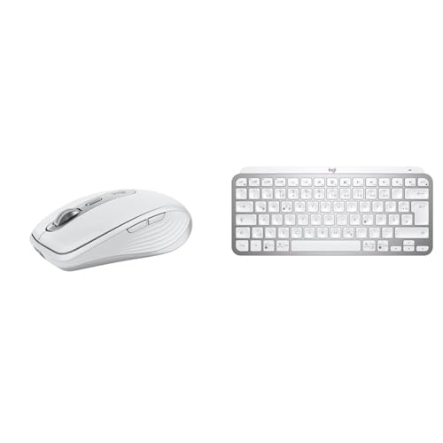 Logitech MX Anywhere 3S Compact Trådlös Mus, Snabb Rullning, 8K DPI Avläsning på alla ytor, Tysta klick - Pale Grey & Logitech MX Keys Mini 920-010480 Tangentbord, Grå (tyska tangentbordslayout)
