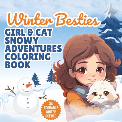 Winter Besties: Girl & Cat Snowy Adventures Coloring Book | Snowy Days with My Cat | 34 Unique Illustrations | 8.5x8.5