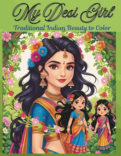 My Desi Girl: Traditional Indian Beauty to Color: A 62-Page Coloring Book Featuring Graceful Indian Girls in Sarees, Jewelry, and Cultural Charm – One-Sided Pages for All Ages