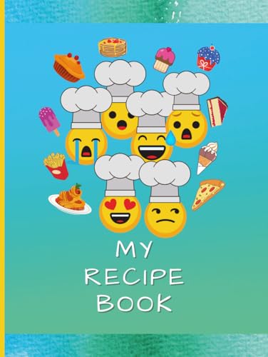 My Recipe Book: A Blank Emoji Cookbook Journal for Kids, Young Chef– Blue Candy recipe notebook-Large Composition 8.5” x 11”