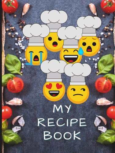 My Recipe Book: A Blank Emoji Cookbook Journal for Kids, Young Chef – Black recipe spice notebook-Large Composition 8.5” x 11”
