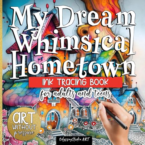 My Dream Whimsical Hometown - Ink Tracing Book for Adults and Teens - Art Without Pressure: Reverse coloring book with artistic doodles. Relaxing Tracing Book.
