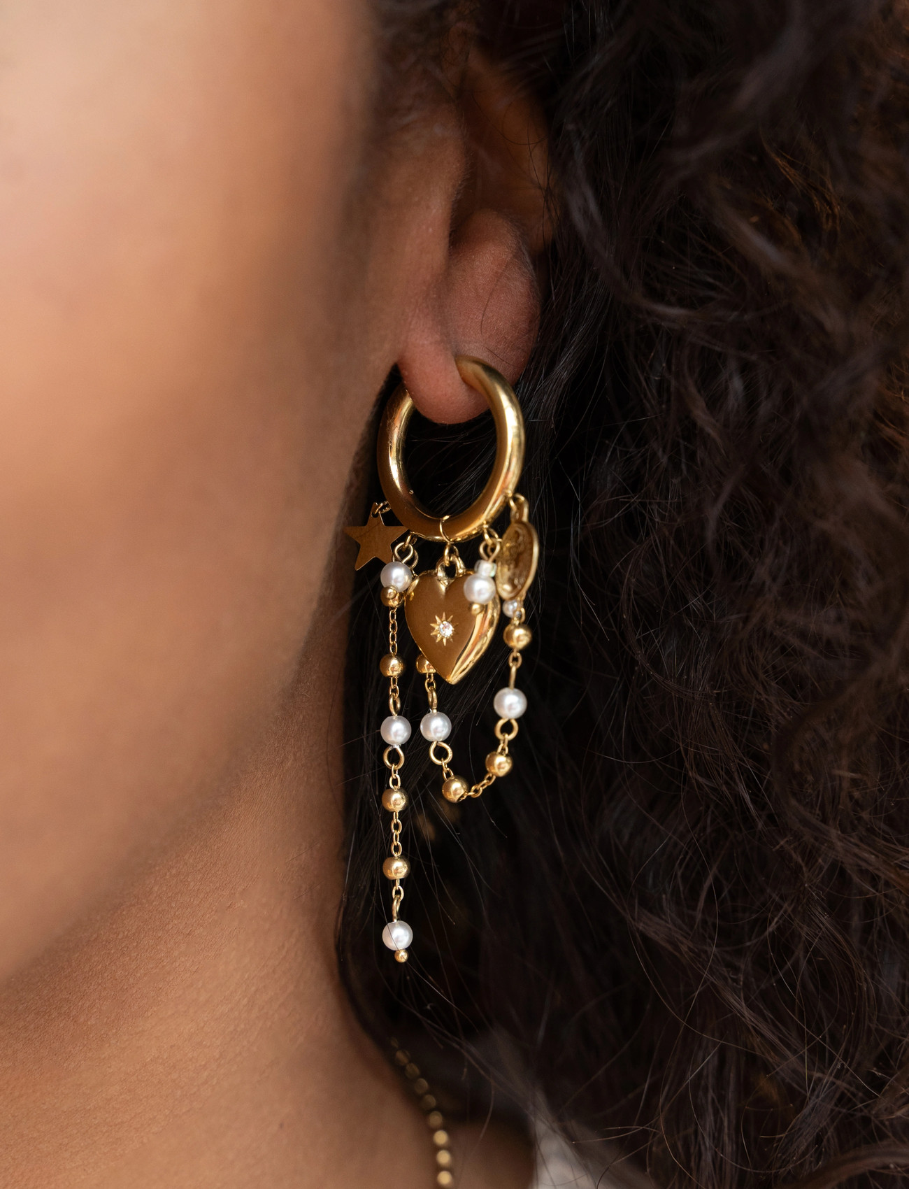 My Jewellery Earrings Heart Pearl String - Gold - ONE SIZE