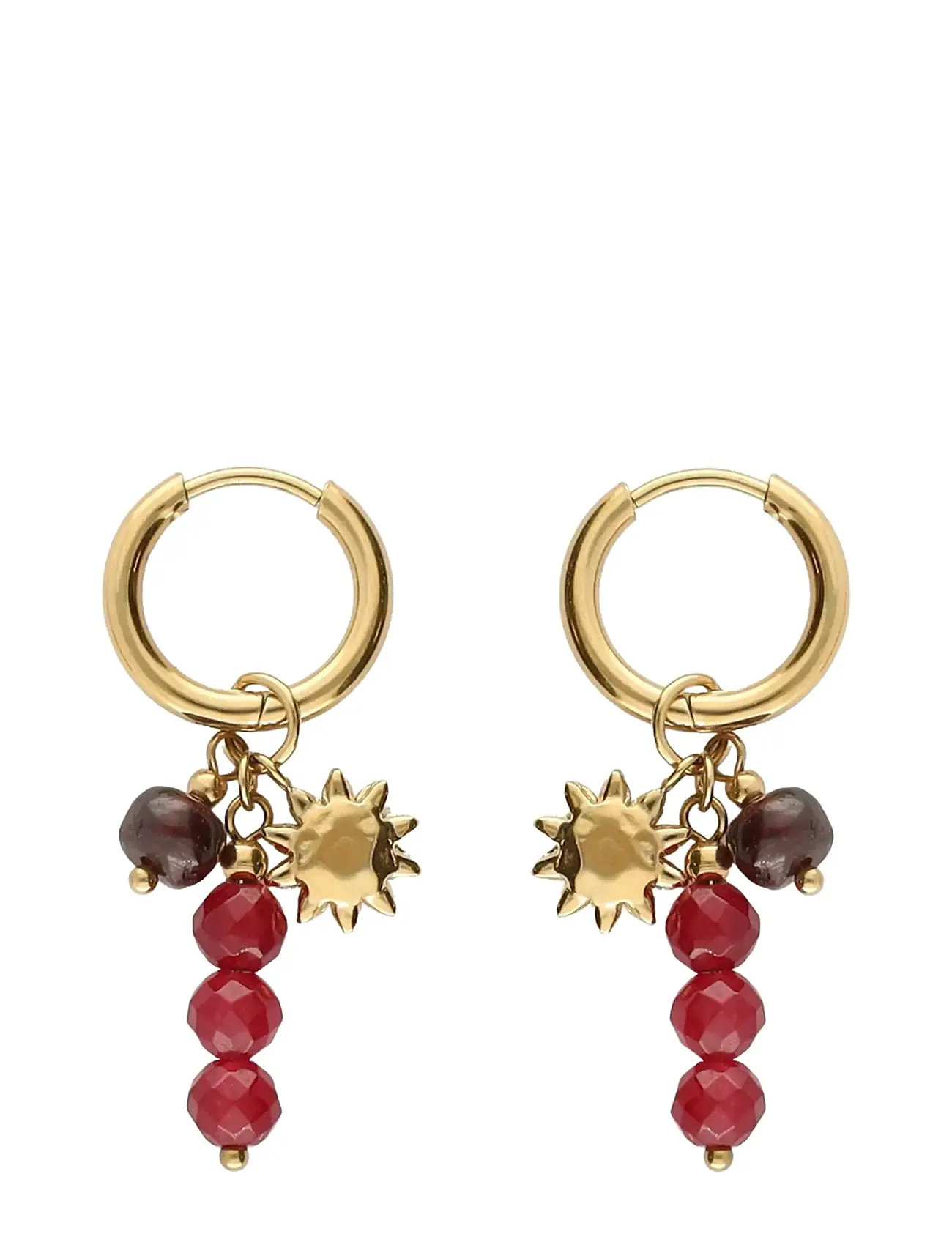 My Jewellery Earring Hoops Burgundy Beads Sun - Gold - ONE SIZE