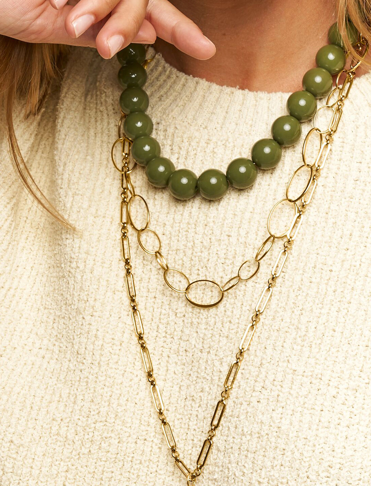 My Jewellery Necklace Beads Big Olive Green - Khaki green - ONE SIZE