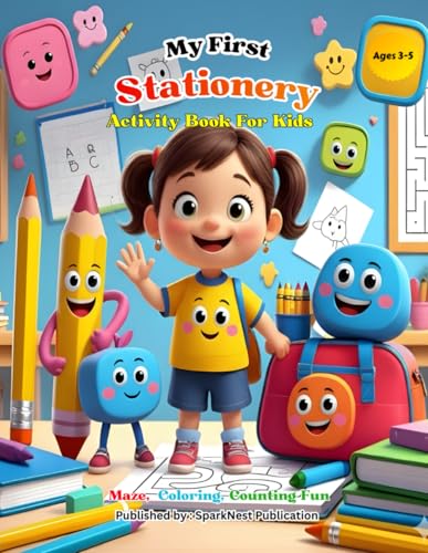 My First Stationery Activity Book for Kids Ages 3–5: Learn, Trace, Count, and Color School Supplies | Preschool & Toddler Educational Coloring, Maze, and Dot-to-Dot Book
