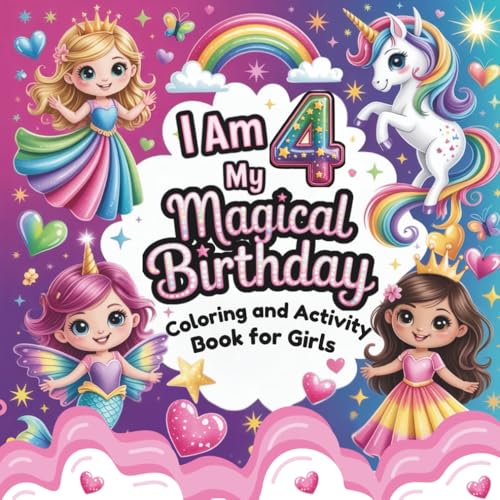I Am 4 My Magical Birthday Coloring and Activity Book for Girls: Cute and Simple Coloring, Tracing, and Maze Activities with Princesses, Unicorns, ... Adorable Animals - Age 4 Girls Activity Book