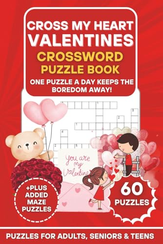 Cross My Heart Valentines Crossword Puzzle Book: 60 Love-Themed Crossword Puzzles + Bonus Maze Games | One Puzzle a Day Keeps the Boredom Away! | Large Print Brain Games for Adults, Seniors & Teens