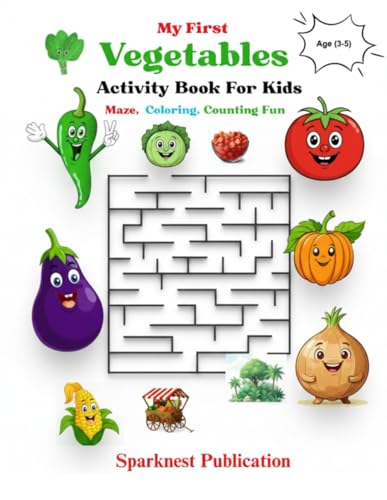 My First Vegetables Activity Book for Kids Ages 3–5: Maze, Coloring & Counting Fun to Learn, Trace, and Color | Preschool & Toddler Educational Activity Book for Early Learning