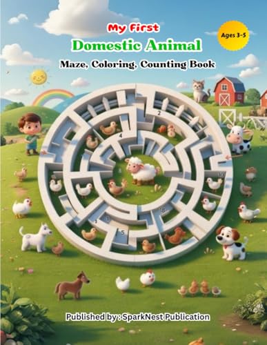 My First Domestic Animals Maze, Coloring & Counting Book for Kids: Preschool Activity Book to Learn, Count, and Color | Fun Educational Mazes for Toddlers & Kids Ages 3–5